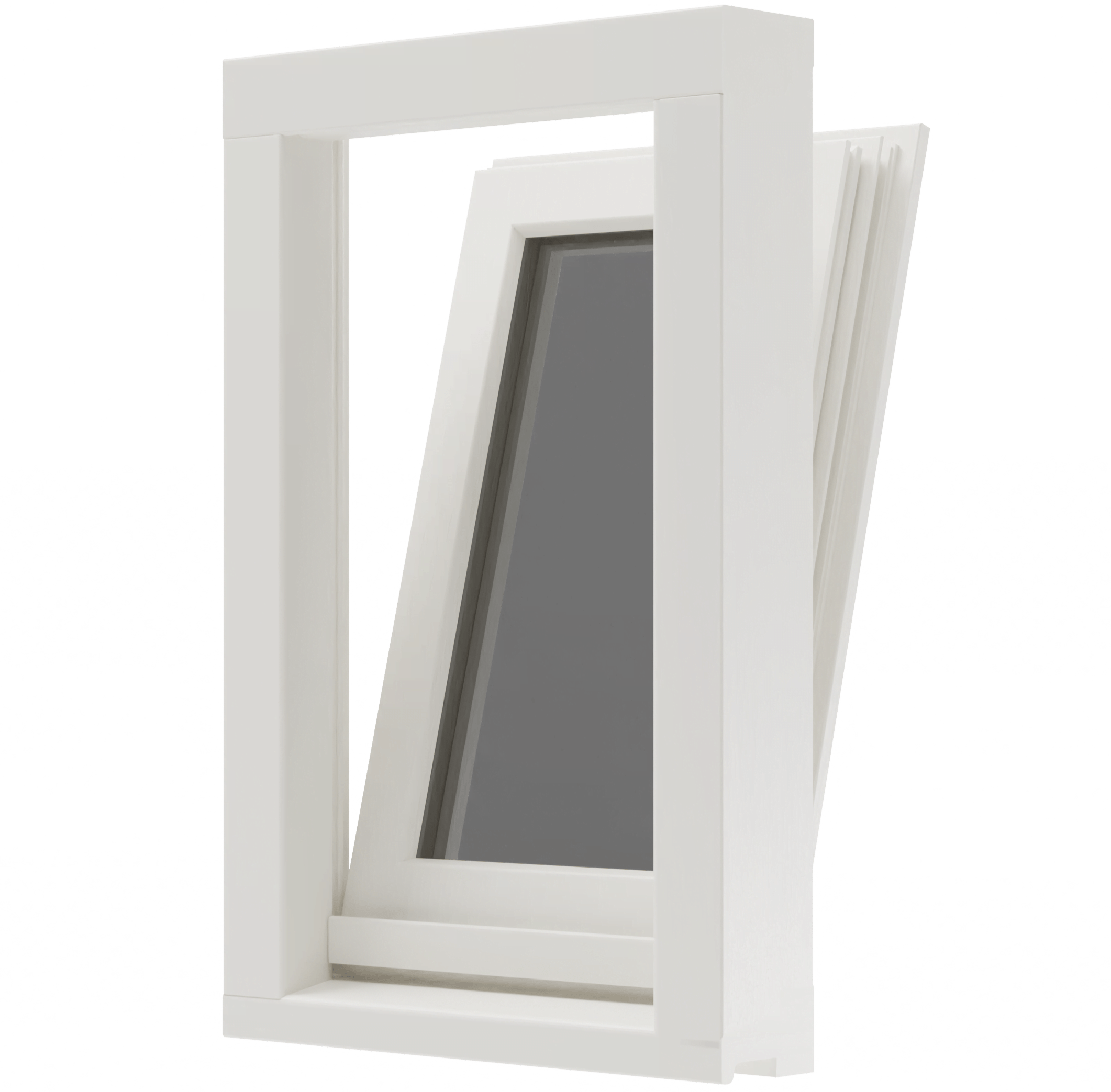 De houten valramen van Toelevering Online vallen naar binnen. Je kunt bij het samenstellen van je houten valraam verschillende mogelijkheden voor de beglazing selecteren.