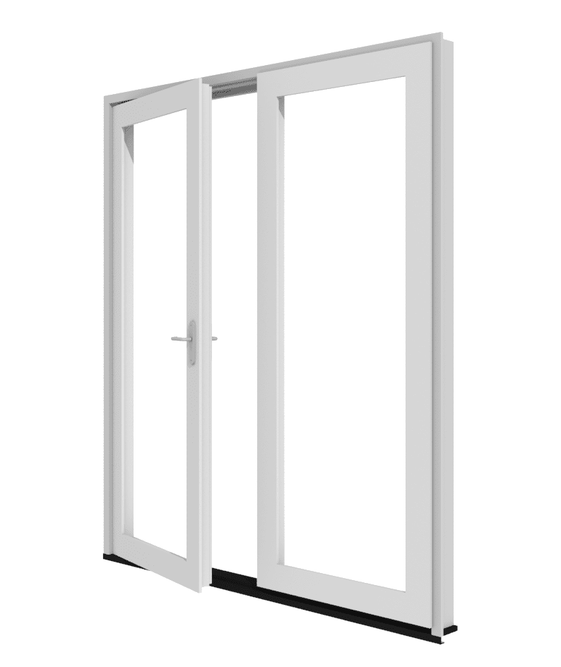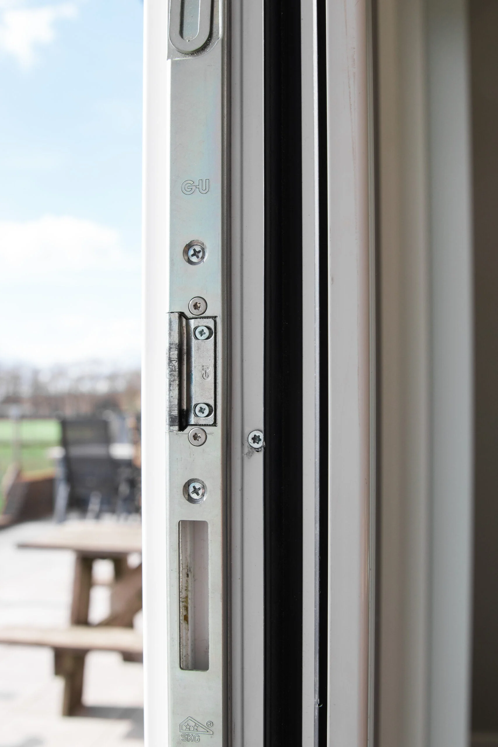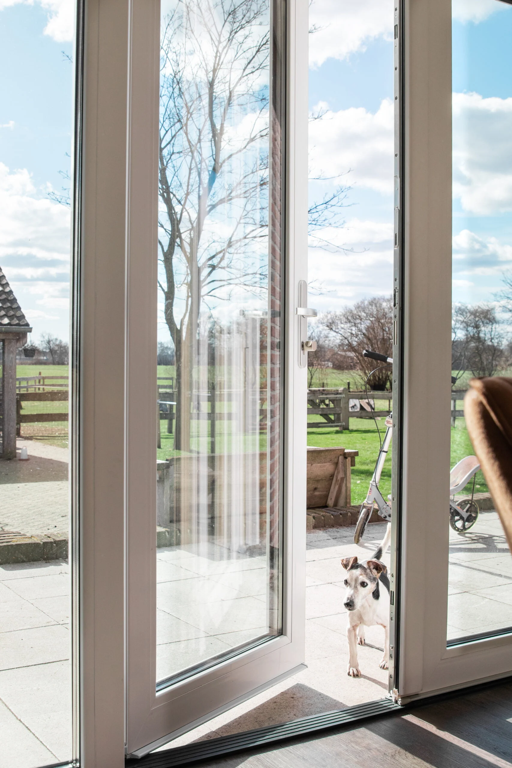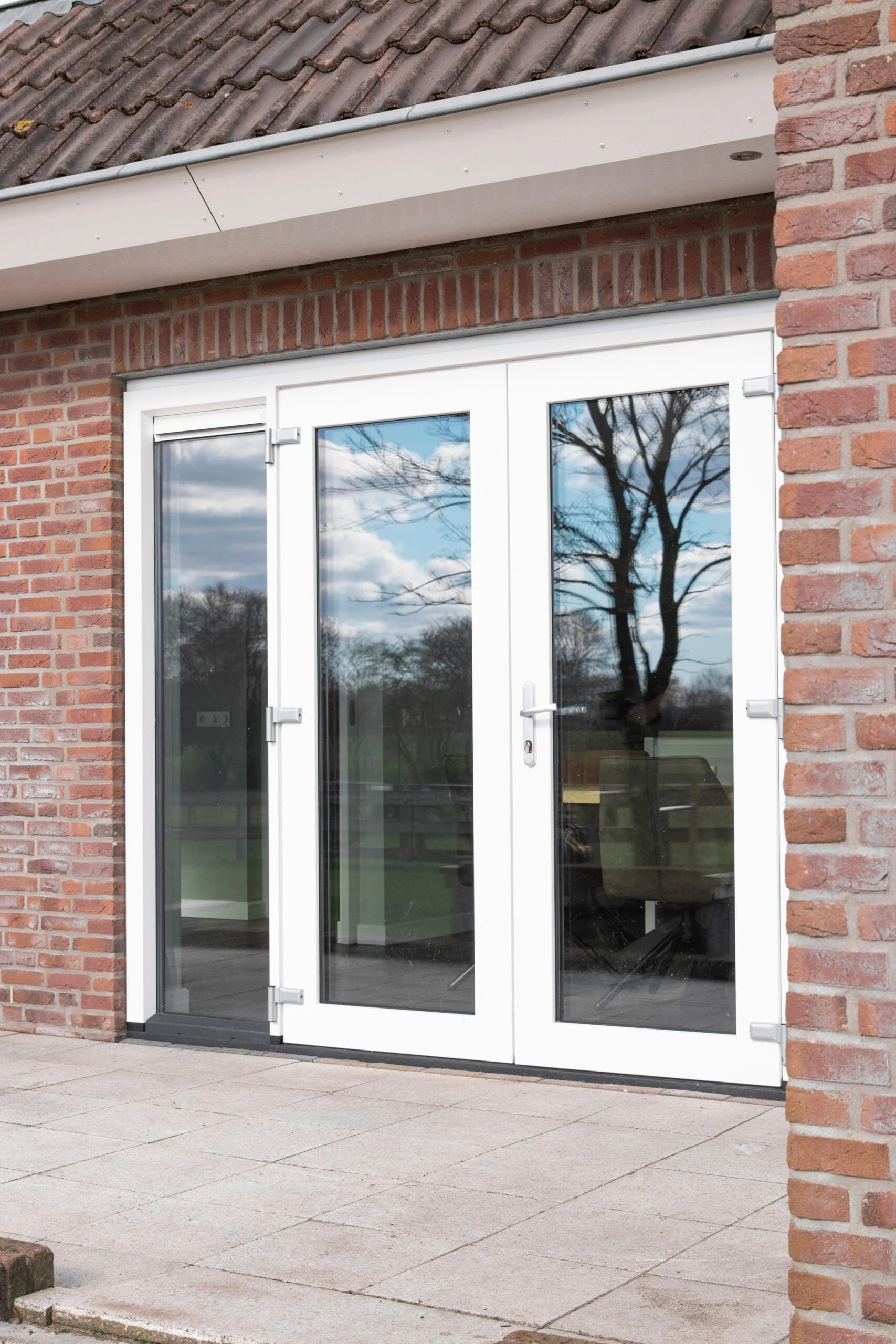 Dit is de dubbele naar buiten draaiende terrasdeur van Toelevering Online. Wij leveren deze stolpdeuren compleet afgemonteerd, inclusief cilinders met kerntrekbeveiliging, een driepuntssluting en het deurgarnituur. Er kan gekozen worden voor een laag reliëf dorpel, zodat je lage opstap krijgt en je niet struikelt over de onderdorpel. De vaste deur is eenvoudig te bedienen met de integreerde espagnolet. Het kozijn en de vleugel kan voorzien worden van een renolit folie, acryl colour of je voert het uit in basis glad wit of crème. De verbinding van het profiel kan haaks of in 45 graden. Wil je het helemaal compleet, dan kan je het kozijn ook laten leveren inclusief beglazing. Creëer een nostalgische uitstraling door roeden toe te voegen aan het kozijn. De kunststof kozijnen en deuren worden samengesteld uit gerenommeerde profielsystemen. Zoals onder andere Gealan en K-VISION. Vul hieronder de maatvoering in, en selecteer de gewenste opties.