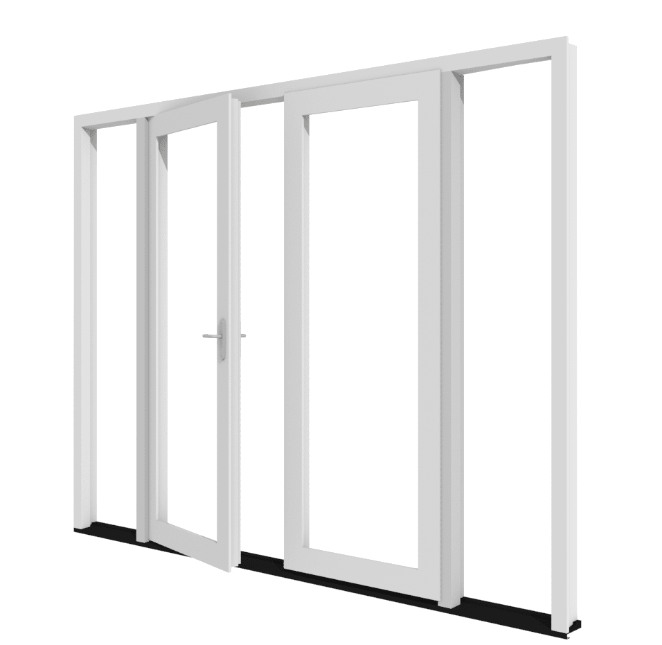 Dit is het kunststof kozijn met dubbele naar buiten draaiende tuindeuren van Toelevering Online met twee zijlichten. Supergaaf, met heel veel lichtinval. Wij leveren deze stolpdeuren compleet afgemonteerd, inclusief meerpuntssluting, deurgarnituur en zelfs cilinder met kerntrekbeveiliging. Standaard is een laag reliëf dorpel toegepast, zodat je een lage opstap hebt. Wil je een doorlopend PVC profiel, dan kun je dit samenstellen via de configurator. De vaste deur is eenvoudig te bedienen met de integreerde espagnolet. Het kozijn en de deurvleugel kan voorzien worden van een houtnerf structuur door middel van renolit folie of kies voor een strak kozijn door acryl colour te selecteren of het basisprofiel in glad wit of crème. De verbinding van het profiel kan haaks of in 45 graden. Wil je het helemaal compleet, dan kan je het kozijn ook laten leveren inclusief beglazing. Wil je wat ventileren in huis, kies dan voor een ventilatierooster in de zijlichten of in de deuren. De kunststof kozijnen en deuren worden samengesteld uit gerenommeerde profielsystemen. Vul hierboven de maatvoering in, en selecteer de gewenste opties.