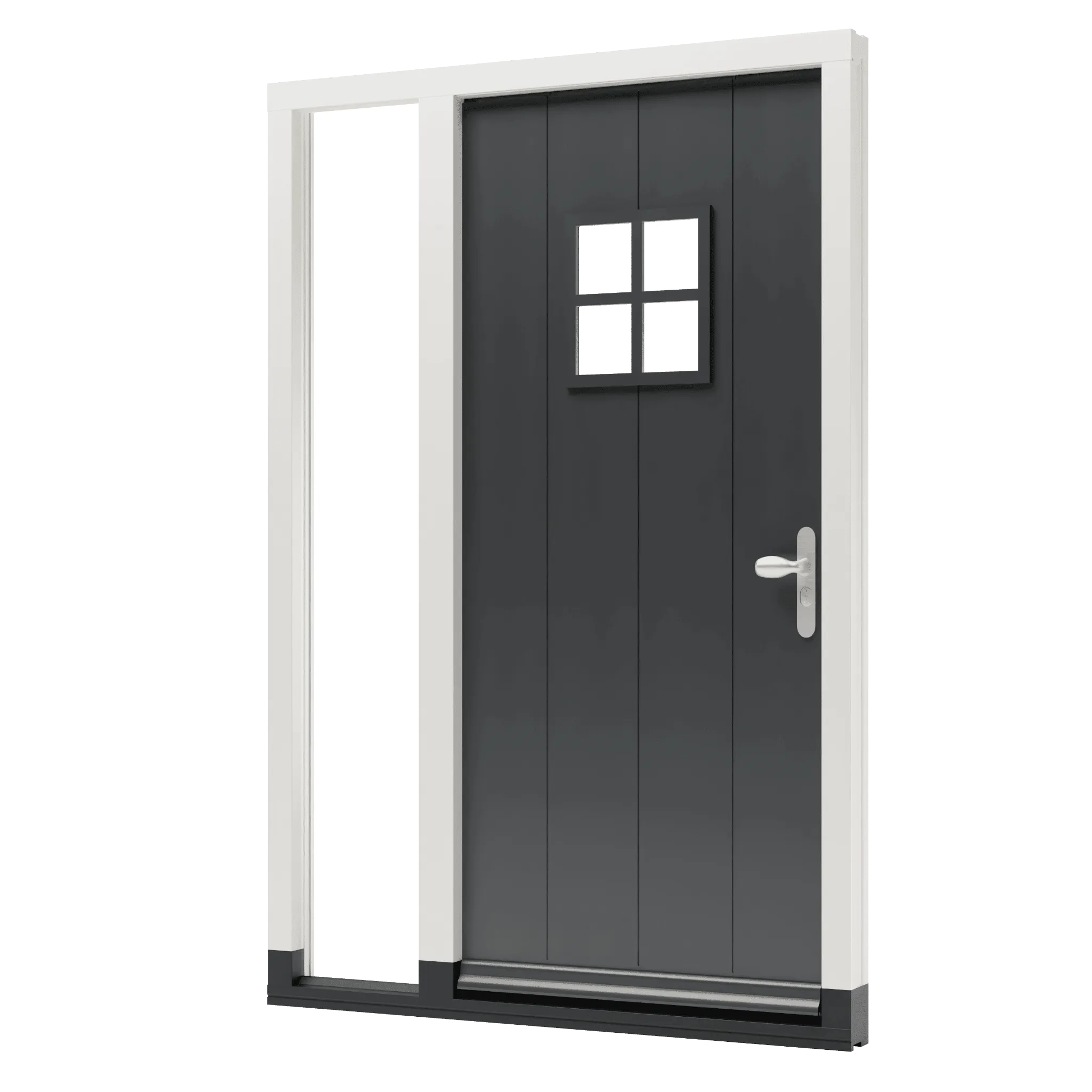 Bekijk hier onze houten voordeur TH16 met een klein glasvak en verticale roeden in de deur. Het kozijn wordt voorzien van een zijlicht aan de linkerzijde om een grote hoeveelheid licht naar binnen te laten vallen. Bij het samenstellen kun je ervoor kiezen een knop-krukbediening toe te passen of te kiezen voor een stanggreep in verschillende afmetingen en kleuren. Start met samenstellen en bestel vandaag nog bij Toelevering Online!