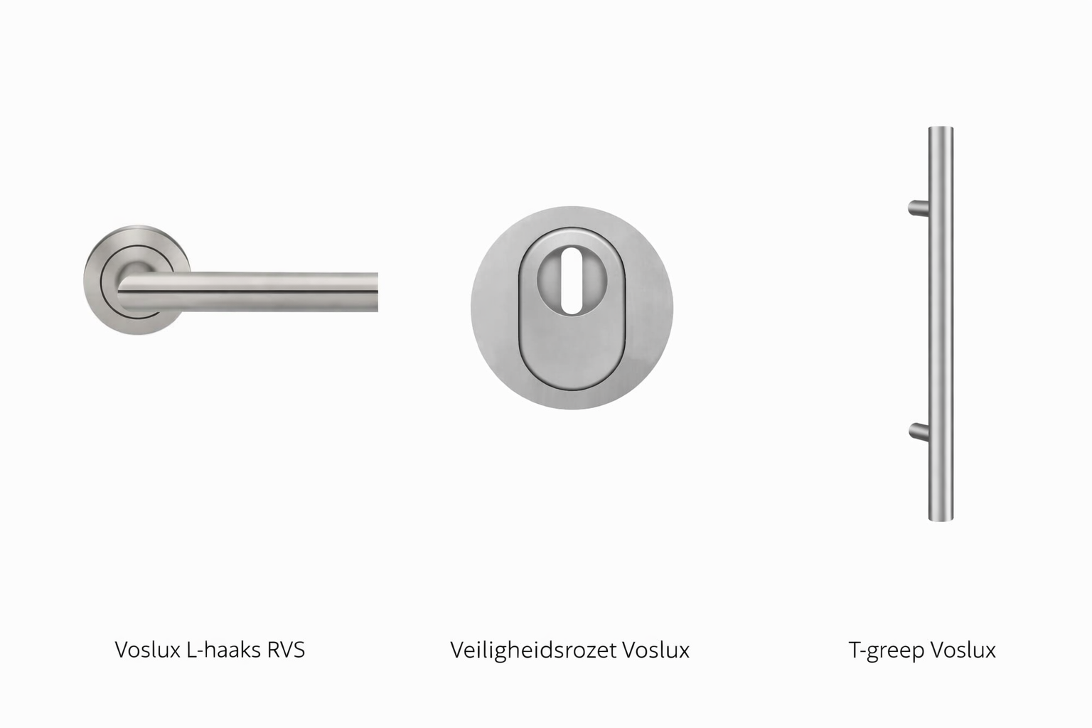 Het is mogelijk om stanggrepen toe te passen aan de buitenzijde van al onze houten voordeuren. Bij de keuze voor een stangreep worden de Voslux T-grepen aan de buitenzijde toegepast. De stanggrepen zijn beschikbaar in een RVS kleur en in een zwarte kleur, daarnaast is er de keuze voor een 1000mm of voor een 1600mm stanggreep. Bij de keuze voor een voordeur met stanggreep bevat de binnenzijde van de voordeur een Voslux L-haakse deurkruk. De deuren worden voorzien van een veiligheidsrozet voor het openen en sluiten van de deur.